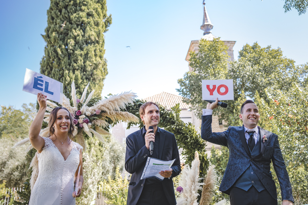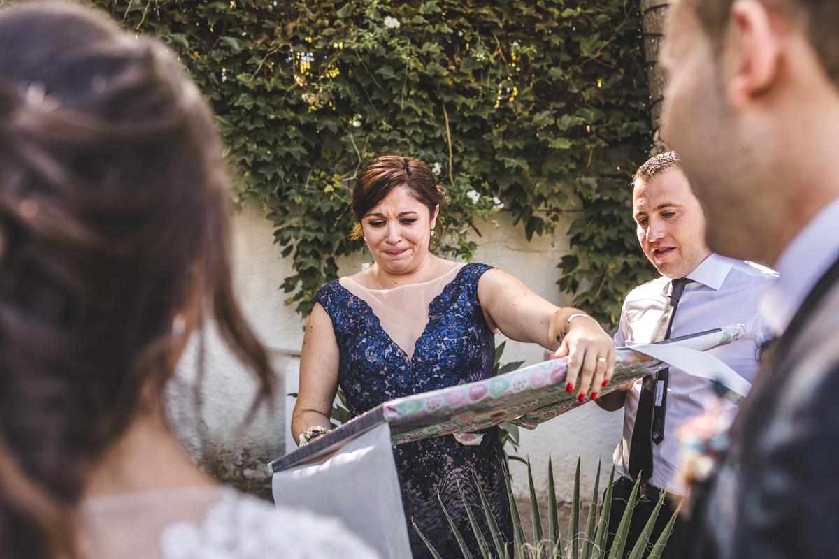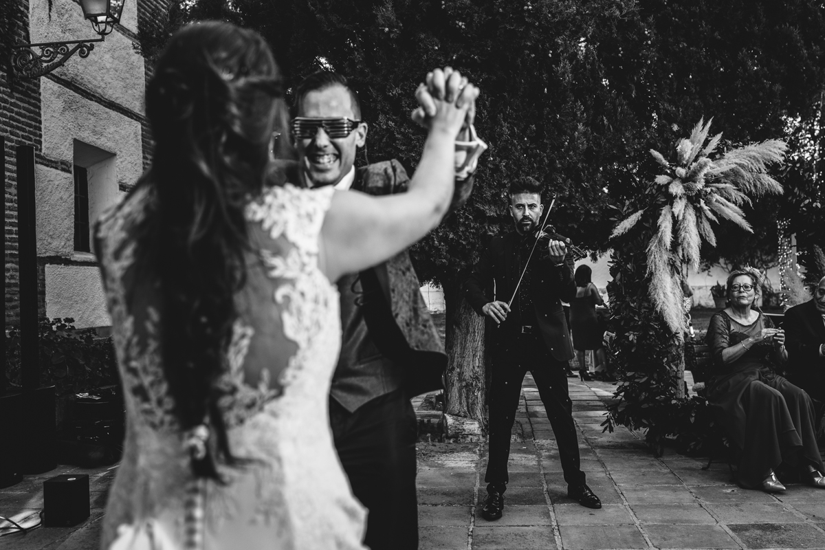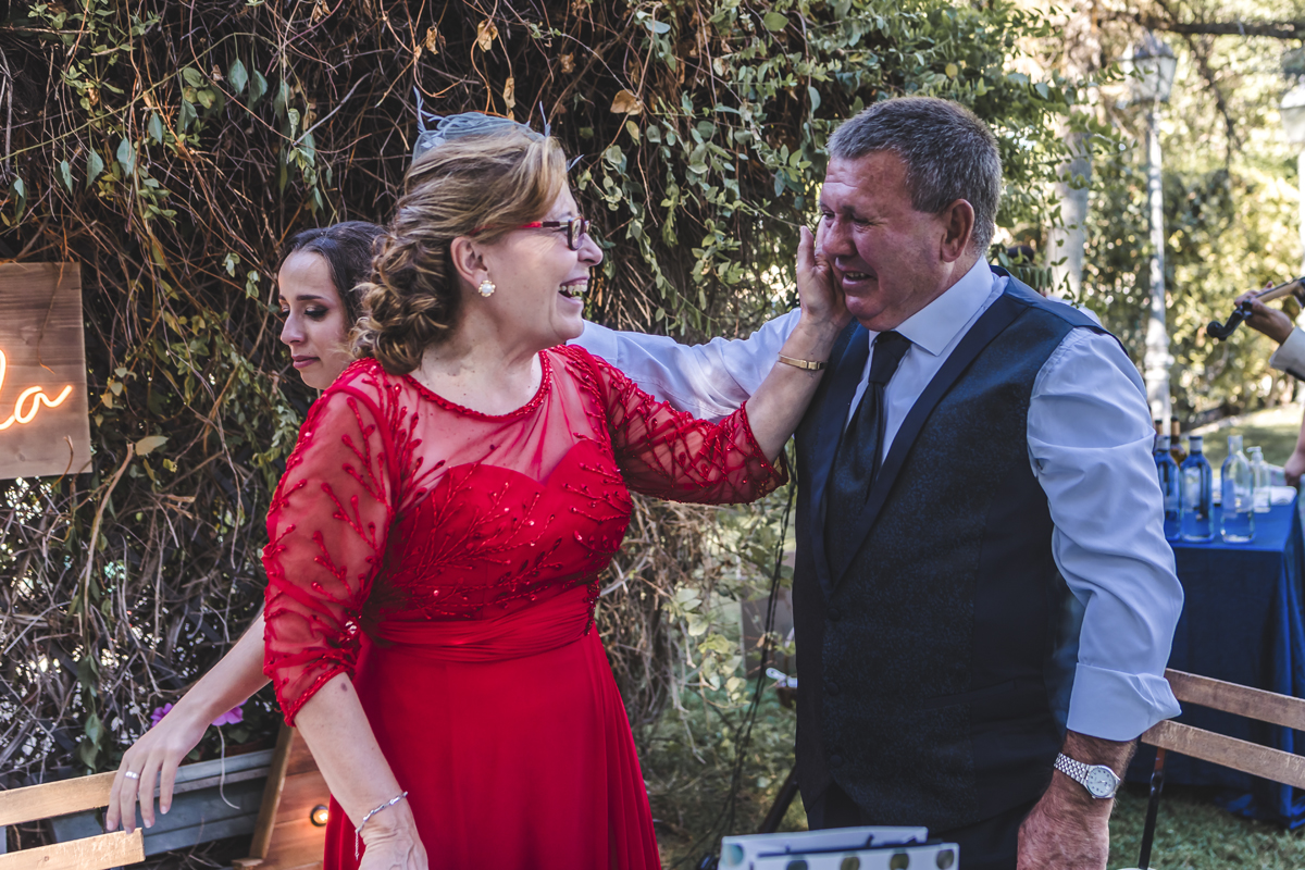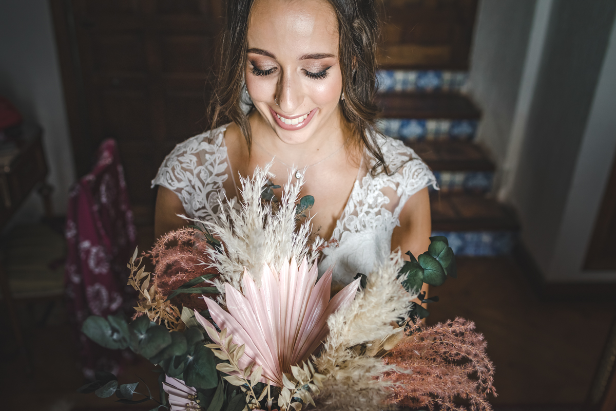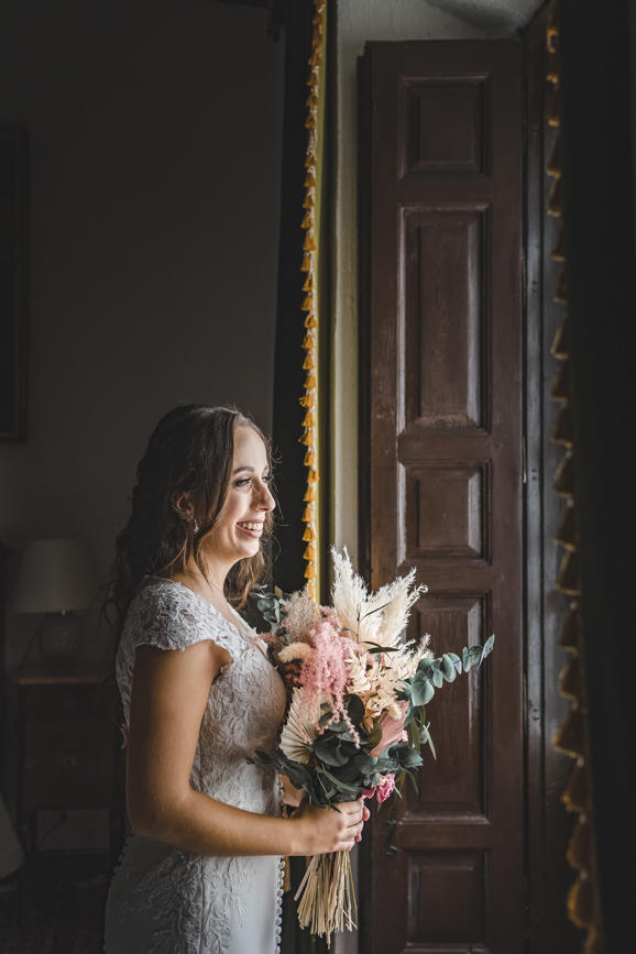 Náyade es tímida, con un gran corazón y amante de los animales, se vistió en la habitación de la finca. Alejandro, es detallista, le gusta estar pendiente de todo y de todos, un verdadero encanto. Cuando me contaron que celebrarían su boda en la preciosa finca La Casa de los Cassy, un lugar que había oído hablar muy bien de él pero no había trabajado aún allí, nos llevamos una grata sorpresa. Un sitio muy personal, íntimo, exclusivo y lleno de encanto. Pablo, gerente de la finca tiene una empatía con todo el personal excepcional, nos sentimos como en casa, gracias Pablo¡¡. También no faltó diversión, contrataron al monologuista Pablo de los Reyes que realizó una ceremonia excepcional y a Germán Vilar, un violinista que amenizó toda la boda y nos deleitó con sus trucos de magia durante la comida, tuvo a todos los invitados muy entretenidos.