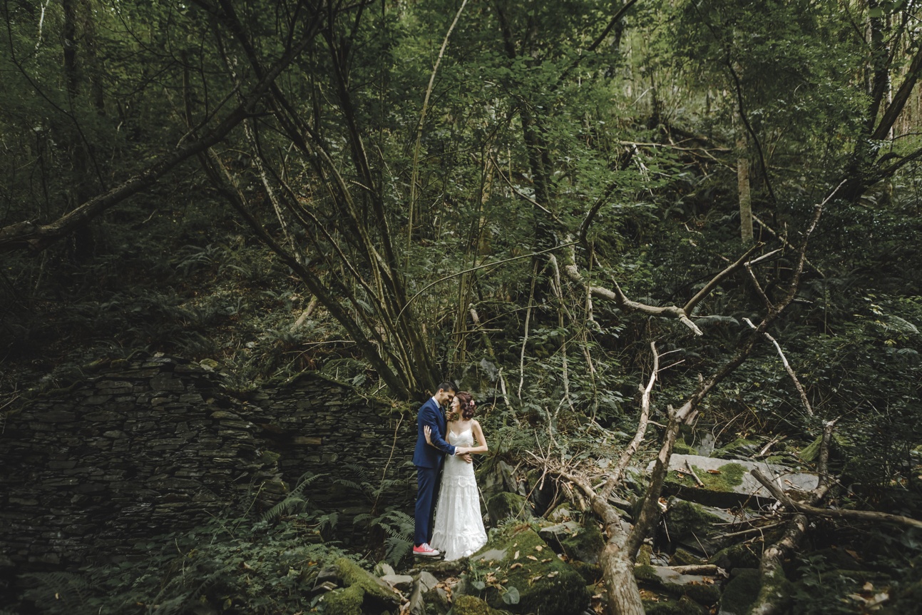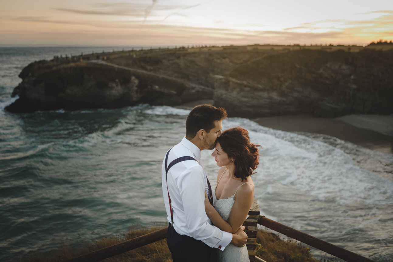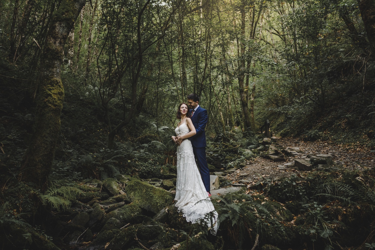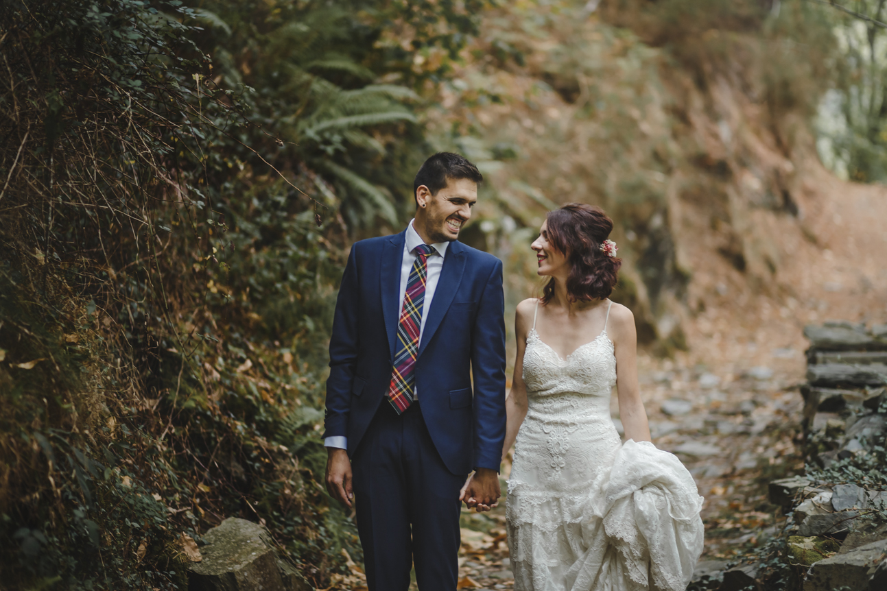 Después de la preciosa boda de Mónica y Jose nos faltaba otra cita con ellos para su postboda. No tenía muy claro dónde me llevarían, pero sé que Mónica es especial y sabía que no sería cualquier sitio. Cuando me propusieron viajar hasta la Asturias profunda, allí donde el tiempo parece que se ha parado, el atardecer parece sacado de una película, la botella de sidra te la sirven fresquita directamente de un arroyo que pasa al lado de la taberna y el verde tiene millones de variedades. Un lugar perfecto para esta postboda donde Mónica y Jose, los protagonistas de esta historia encajaban a la perfección. Ella con su vestido estilo boho de la firma YolanCris y por supuesto ambos con sus Converse Allstar rojas, cómodos para esta sesión pues estaríamos todo el día.